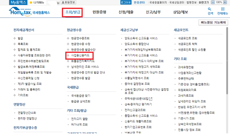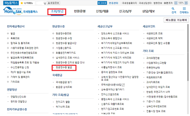 여기서 홈택스 발급신청 을 누르시면 됩니다.